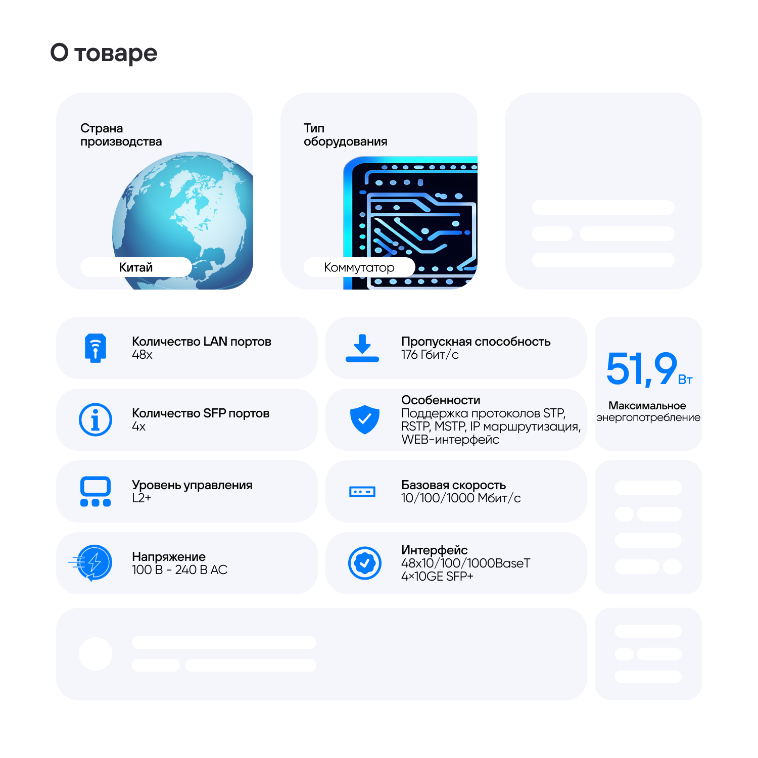 Коммутатор HUAWEI S5735-L48T4X-A1 PoE 48х10/100/1000BASE-T 4х10 GE SFP+ 98011332 совместим для замены с MES3300-48 информация: