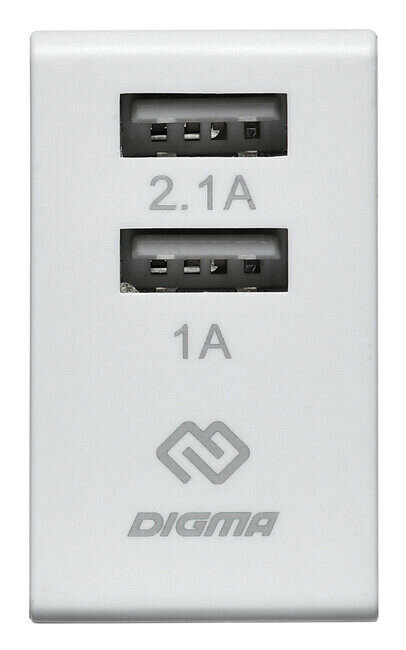 Адаптер Digma 2xUSB 2.1A White Dgwc-2u-3a-wg