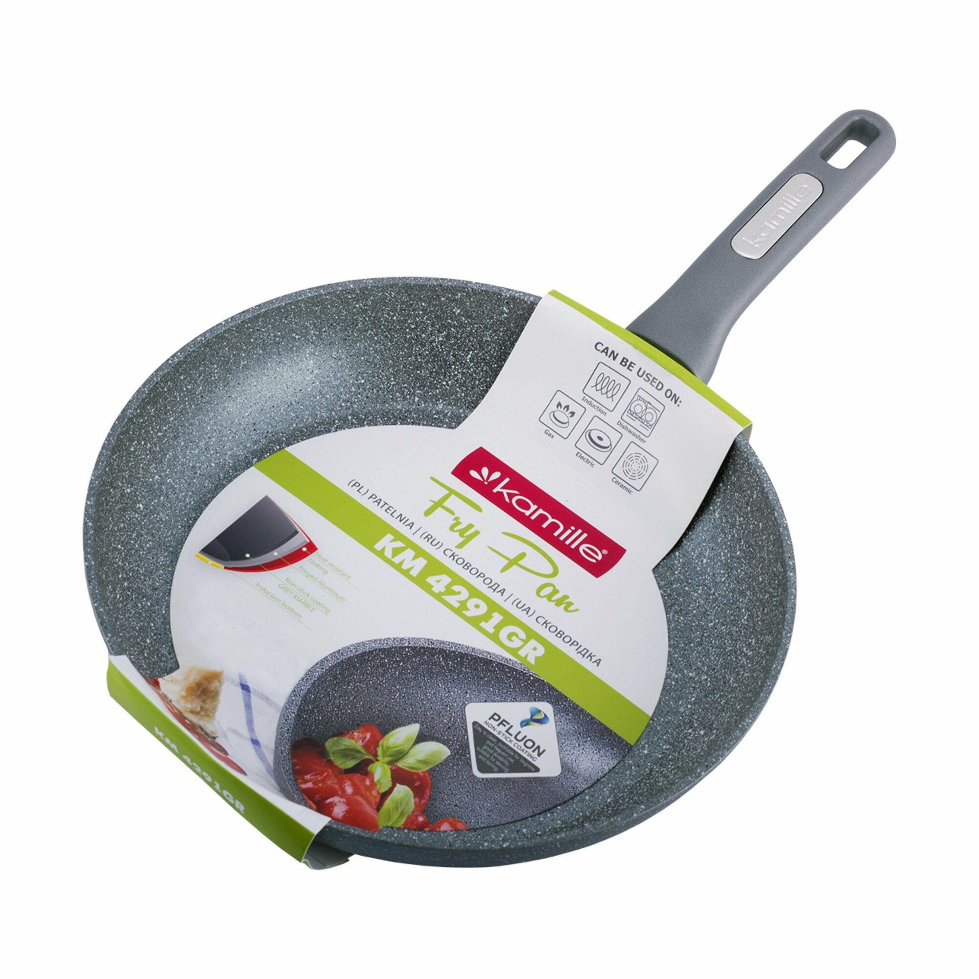 Сковорода 30 см. из литого алюминия Kamille KM 4291GR с мраморным покрытием (30 см. / серый)