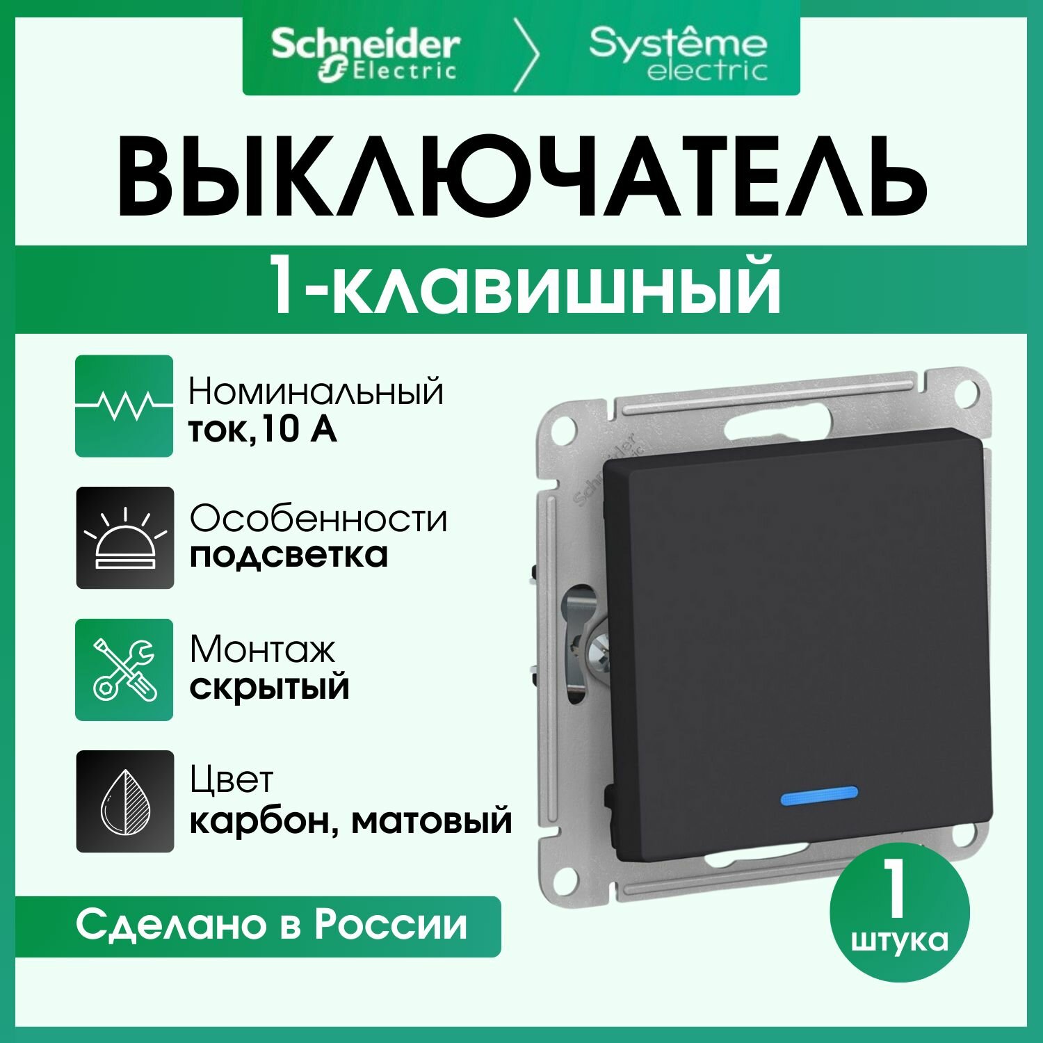 Отзывы на Выключатель одноклавишный Schneider Electric Atlas Design с подсветкой, карбон ATN001013