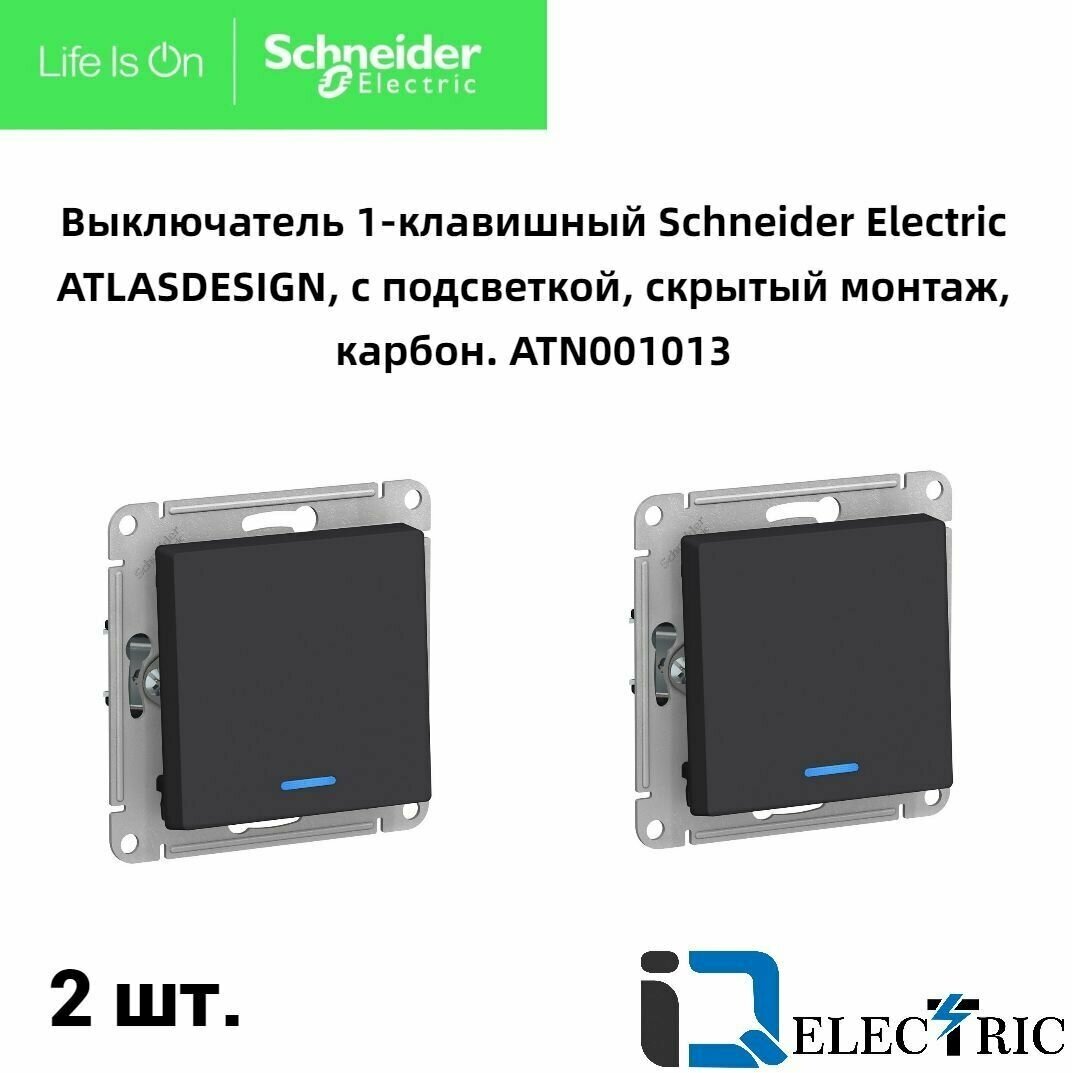 Выключатель одноклавишный Schneider Electric Atlas Design с подсветкой, карбон ATN001013 2 штуки информация: