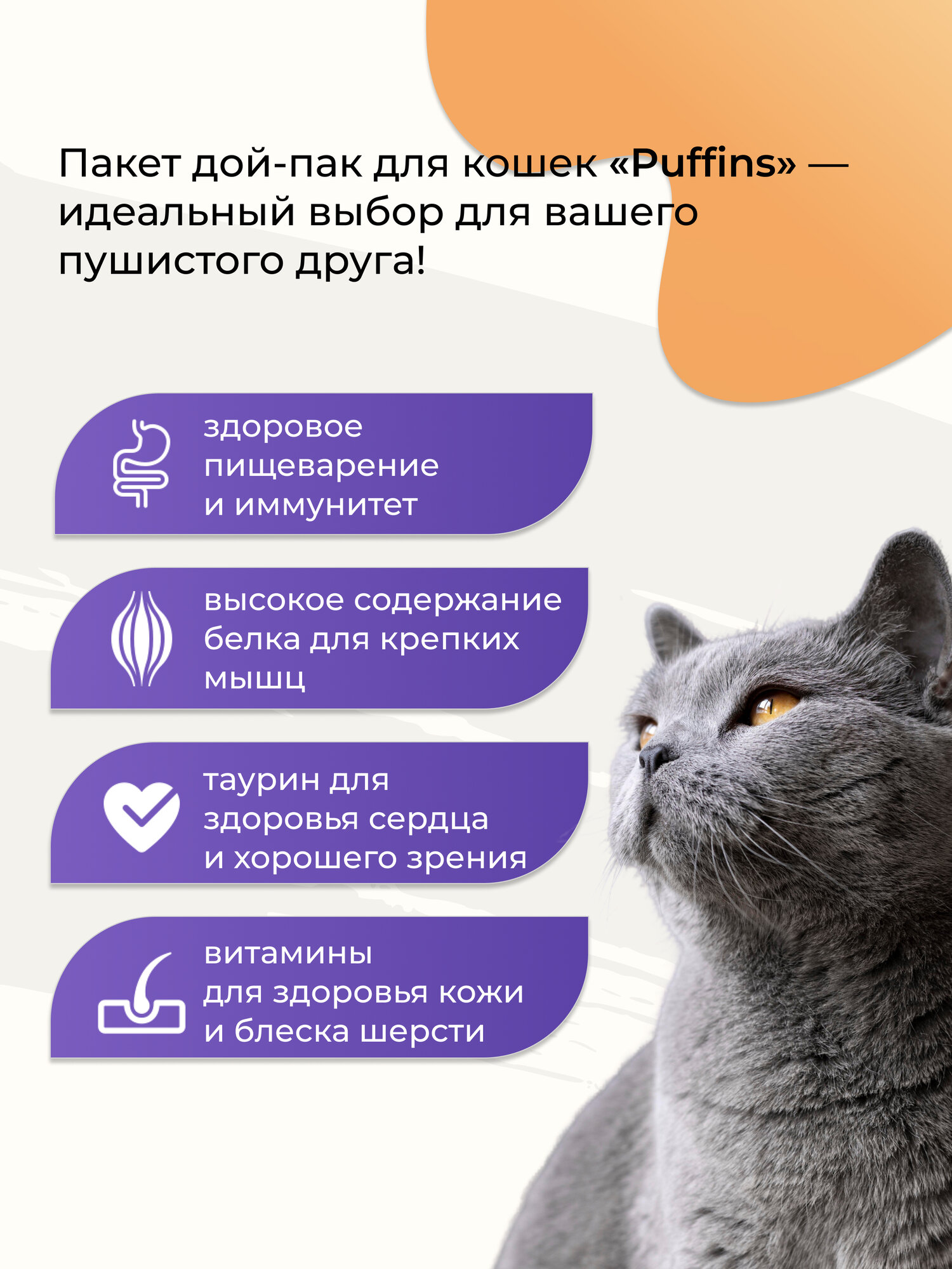 Корм для кошек влажный Puffins , мясное ассорти в соусе, 24 шт по 100 гр 842 ₽