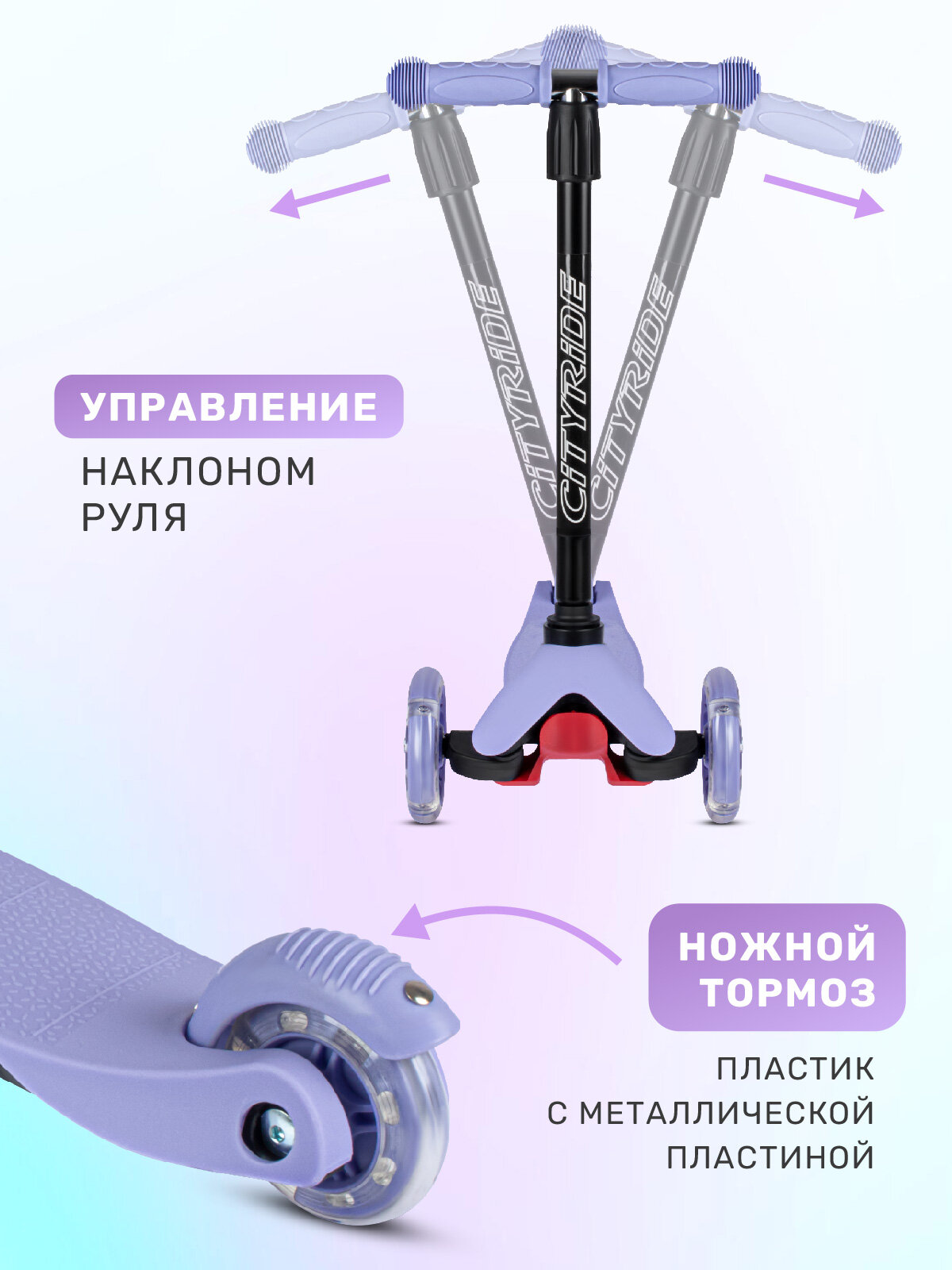 Отзывы на Самокат детский трехколесный CITYRIDE, дека PP+нейлон, колеса PVC 110/76, руль металлический телескопический, CR-S4-01VL