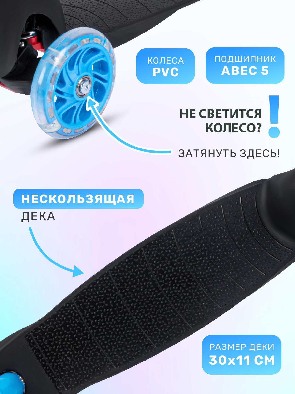 | Дополнительная информация | диаметр заднего колеса: 76 мм; ширина деки: 11 см; класс подшипника: ABEC 5; материал колес: ПВХ; длина деки: 51 см |