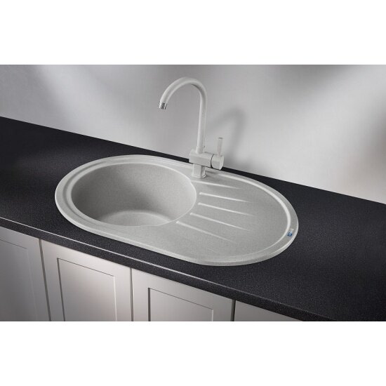 Кухонная мойка кварцевая Granula Standart ST-7601 овальная с крылом, стандарт, чаша D 390, цвет базальт (7601bt) 7 590 ₽
