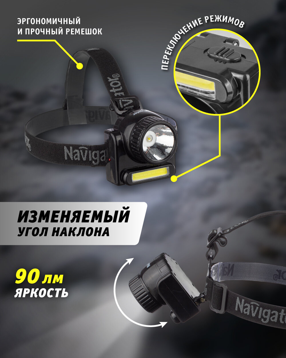 Фонарь налобный NAVIGATOR GROUP Navigator NPT-H20-ACCU 1COB LED 3Вт+1LED 3Вт 580 ₽