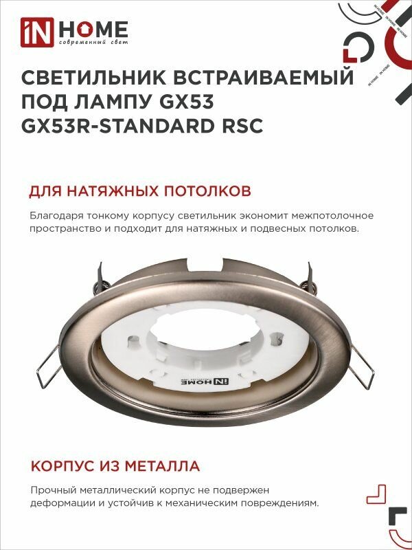 Светильник встраиваемый GX53R-standard RSC-2PACK под GX53 сатин хром (2 шт./упак.) IN HOME информация: