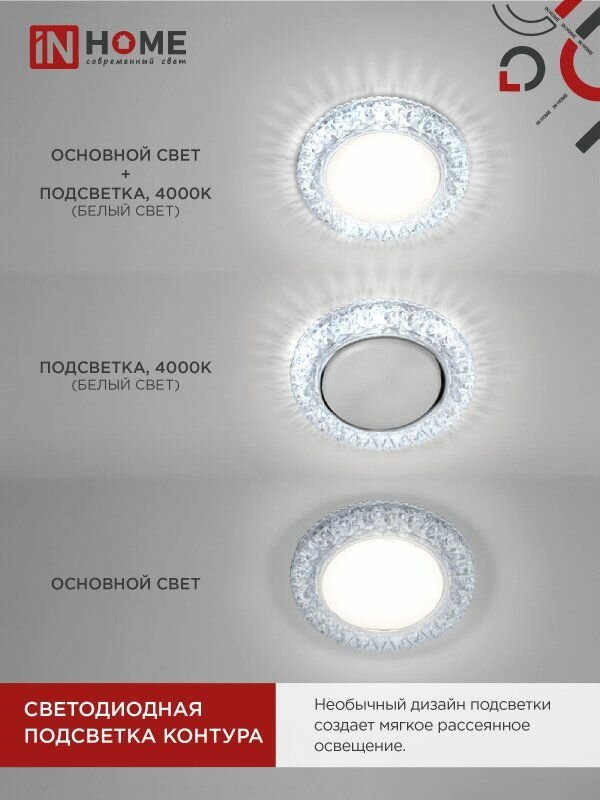 10 цен на Светильник встраиваемый GX53R-crystal R32L-CC с подсветкой 4К под GX53 Прозрачный/Хром IN HOME