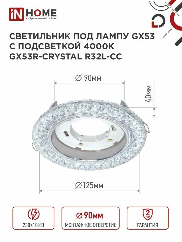 Светильник встраиваемый GX53R-crystal R32L-CC с подсветкой 4К под GX53 Прозрачный/Хром IN HOME информация: