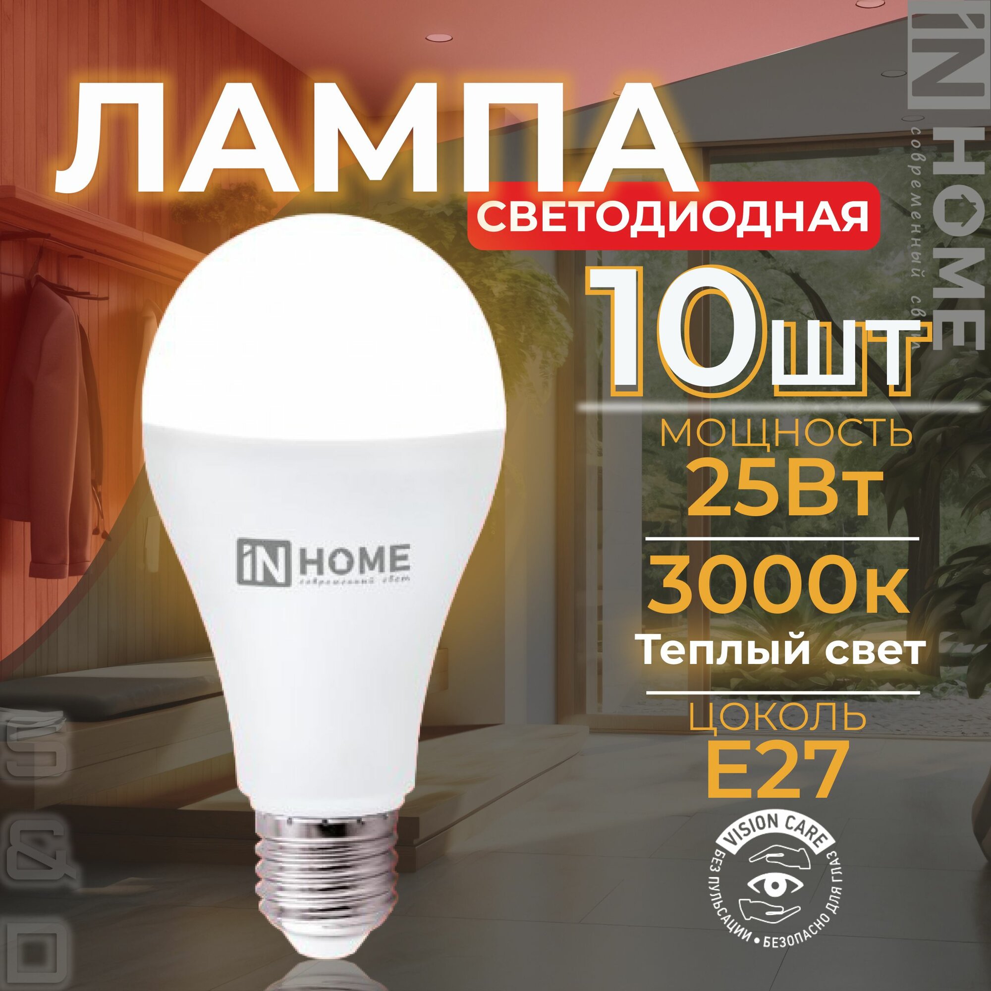 Лампочка светодиодная е27 10 шт 25Вт 230В 3000К 2380Лм IN HOME информация: