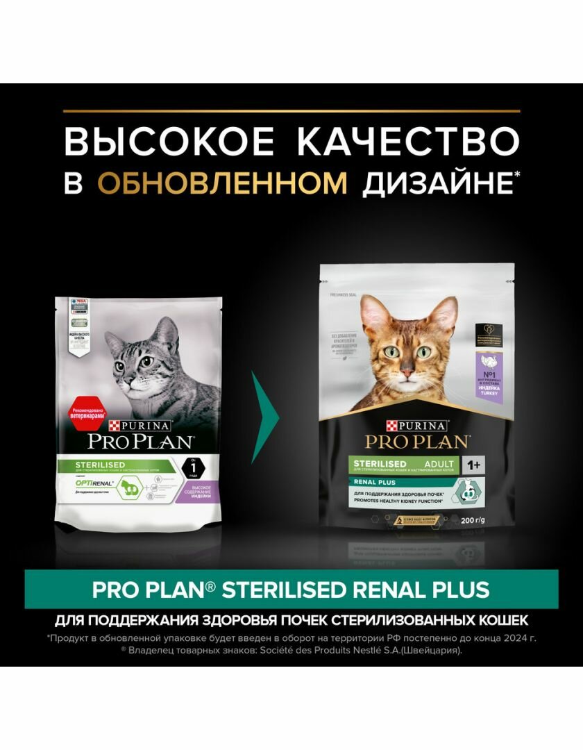 PRO PLAN Sterilised Adult Renal Plus Сухой корм для поддержания здоровья почек у стерилизованных кошек и кастрированных котов, с индейкой, 1,5 кг 3 100 ₽