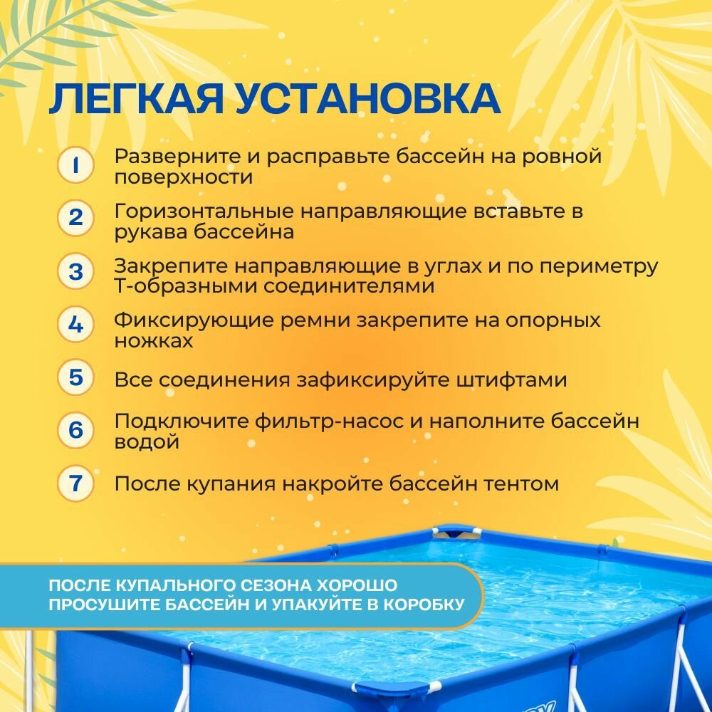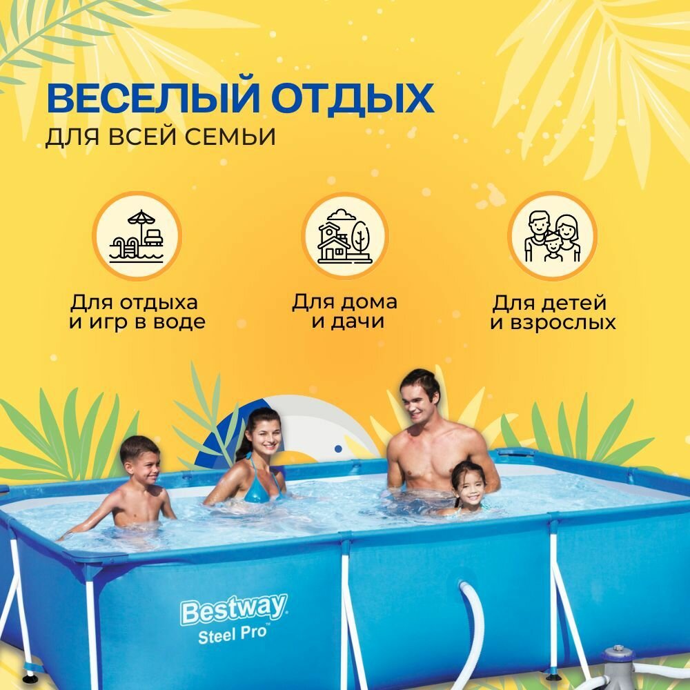 Отзывы на 56411 BestWay Каркасный бассейн прямоугольный, 300х201х66см, фильтр-насос картр 1249 л/ч