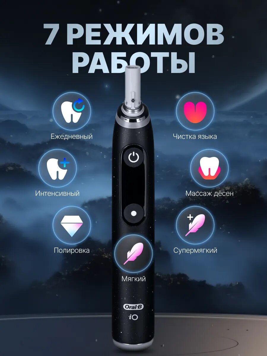 Электрическая зубная щетка Braun Oral-B iO10 Cosmic 10500 оборотов, 7 умных режимов, 56 минут работы, датчик давления, индикатор износа щетины, футляр с функцией зарядки, магнитное зарядное устройство 40 190 ₽