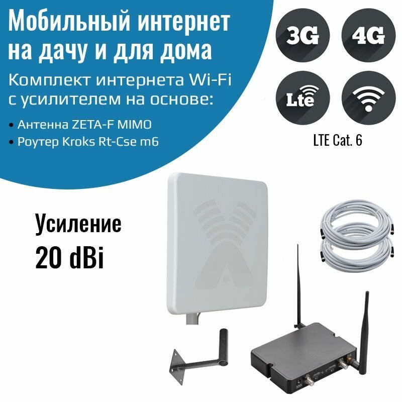 Интернет комплект для загородного дома роутер Kroks Rt-Cse m6 с антенной ZETA-F MIMO 20 дБ информация: