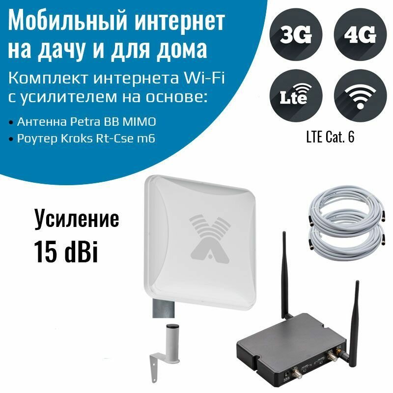 Интернет 4g на дачу для дома комплект роутер Kroks Rt-Cse m6 с антенной Petra BB MIMO 15 дБи информация: