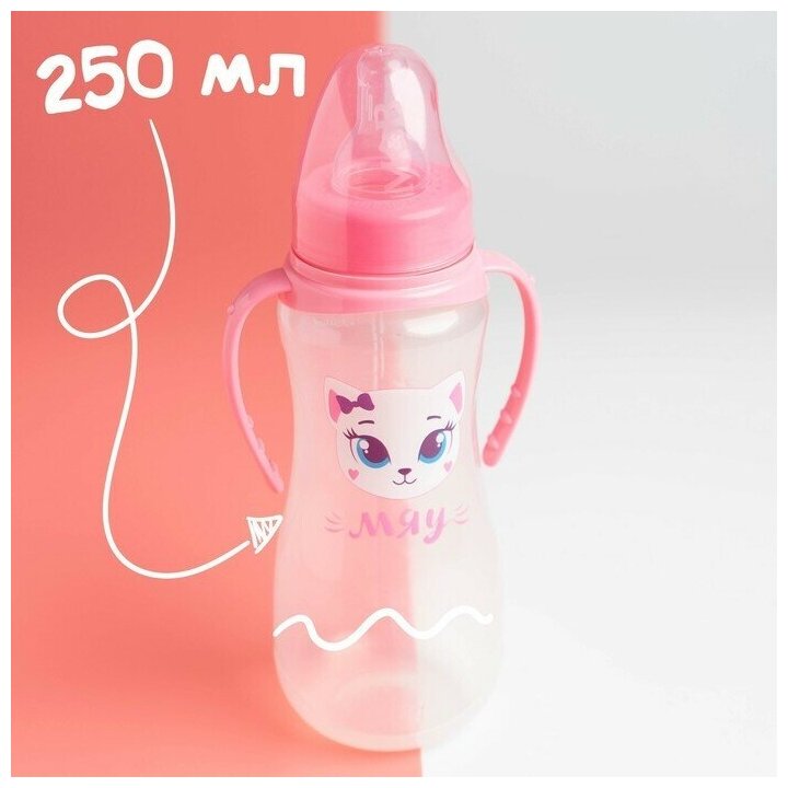 Бутылочка для кормления «Кошечка Софи» детская приталенная, с ручками, 250 мл, от 0 мес., цвет розовый
