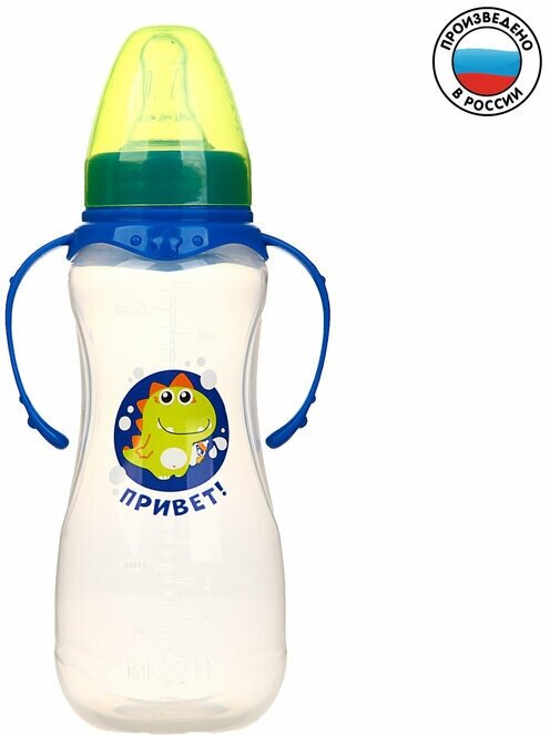 Бутылочка для кормления "Динозаврик Рикки" детская приталенная, с ручками, 250 мл, от 0 мес, цвет синий информация: