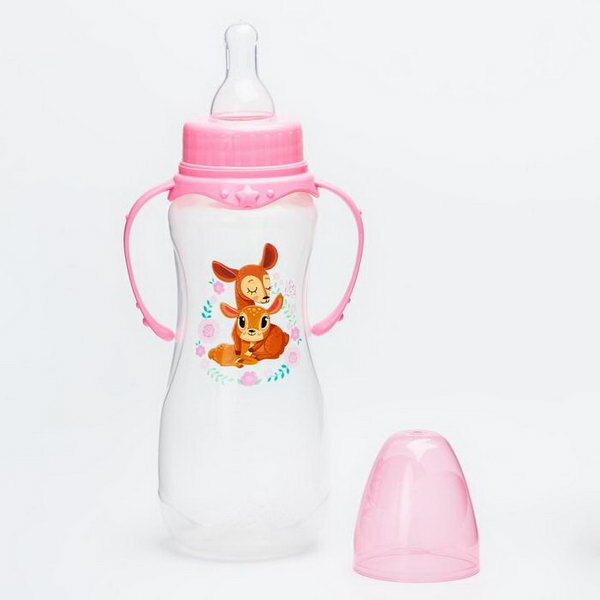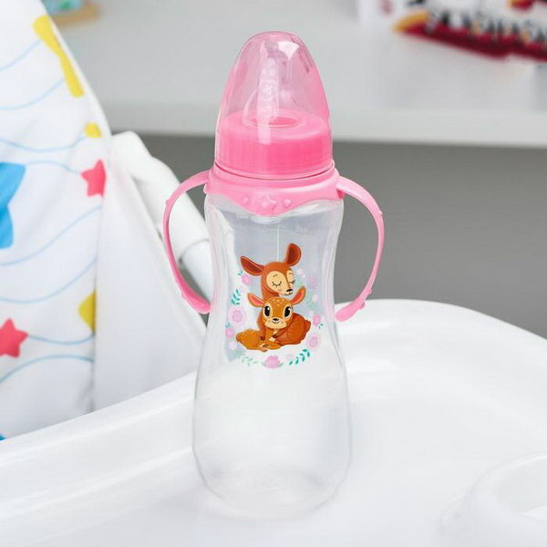 Бутылочка для кормления "Оленята: мамы и малыши" 250 мл приталенная, с ручками 240 ₽