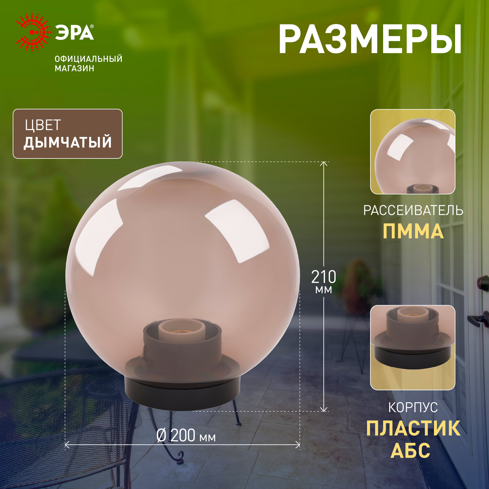 Светильник уличный шар на столб ЭРА дымчатый 220в, D200mm, Е27 информация: