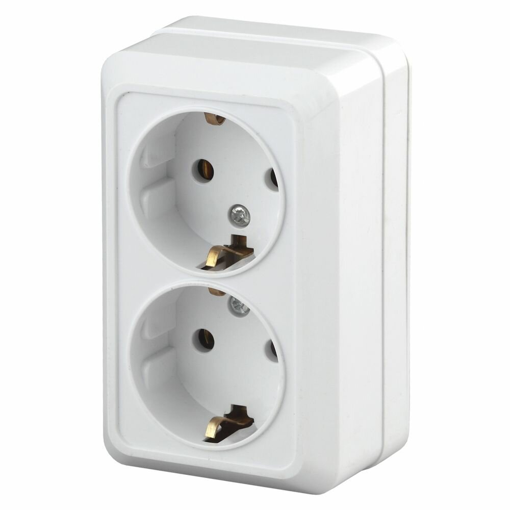 Розетка двойная наружная для открытой проводки с заземлением белая
