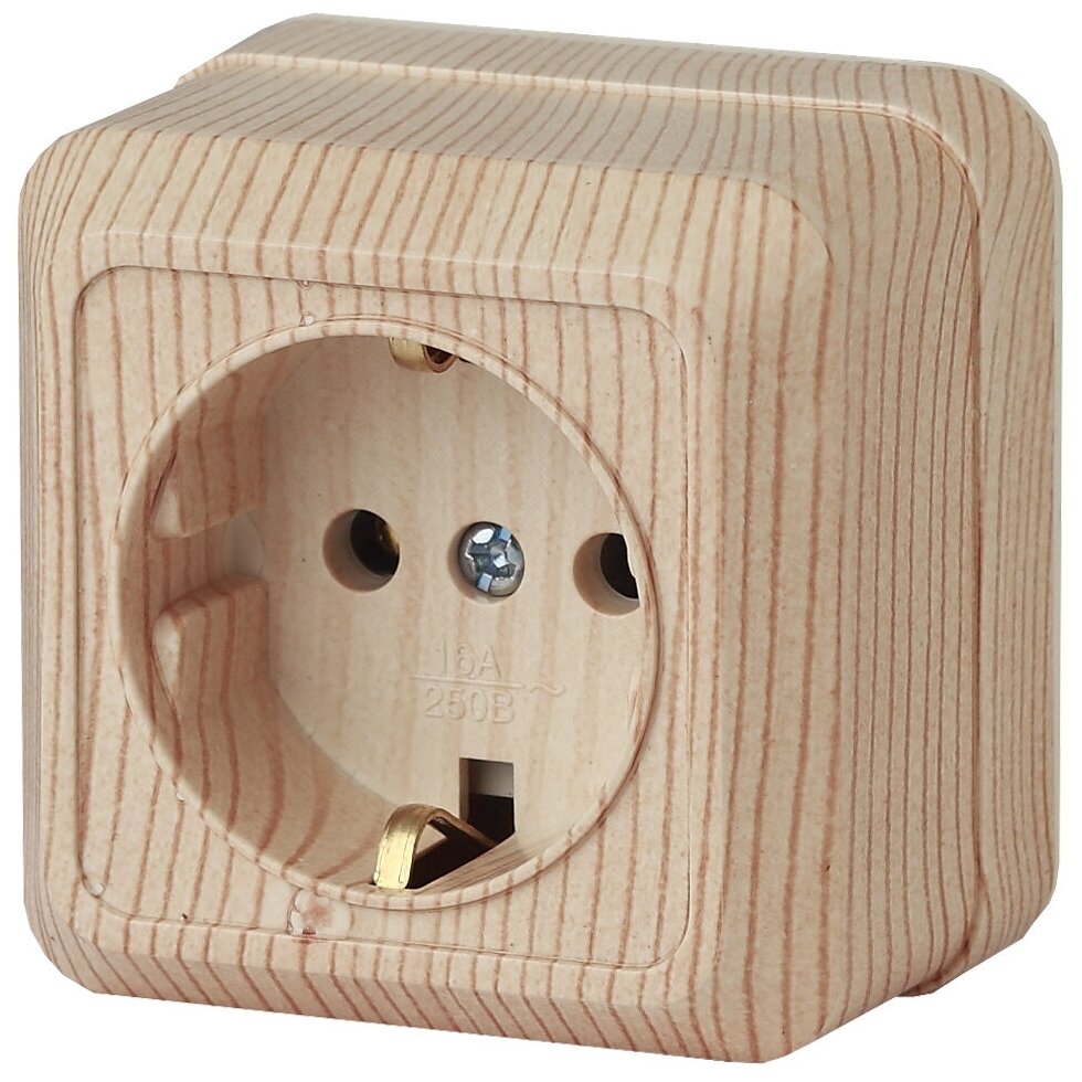 Розетка Intro Quadro 2-202-11 с заземлением открытой установки 16А 250В сосна информация: