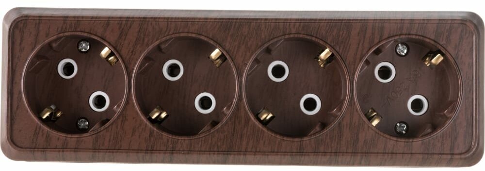 10 цен на Розетка четырехместная Intro Quadro 2-208-10 с заземлением открытой установки 16А 250В венге