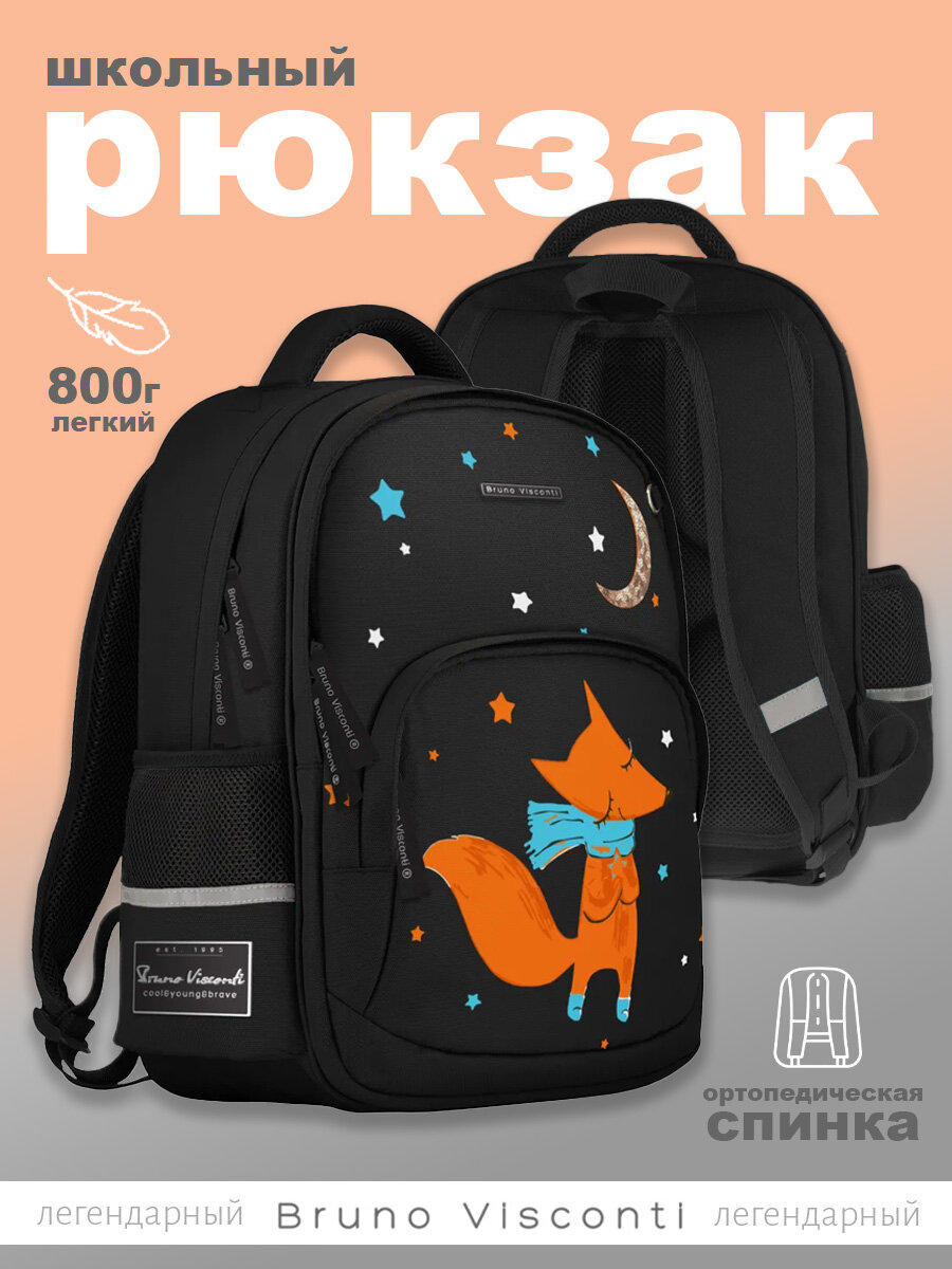 10 цен на Рюкзак Bruno Visconti черный с эргономичной спинкой "волшебный ЛИС" Арт. 12-002-175/01