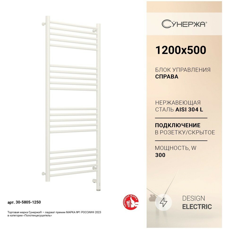 Электрический полотенцесушитель Сунержа Богема 3.0 прямая 1200х500 МЭМ правый матовый белый информация:
