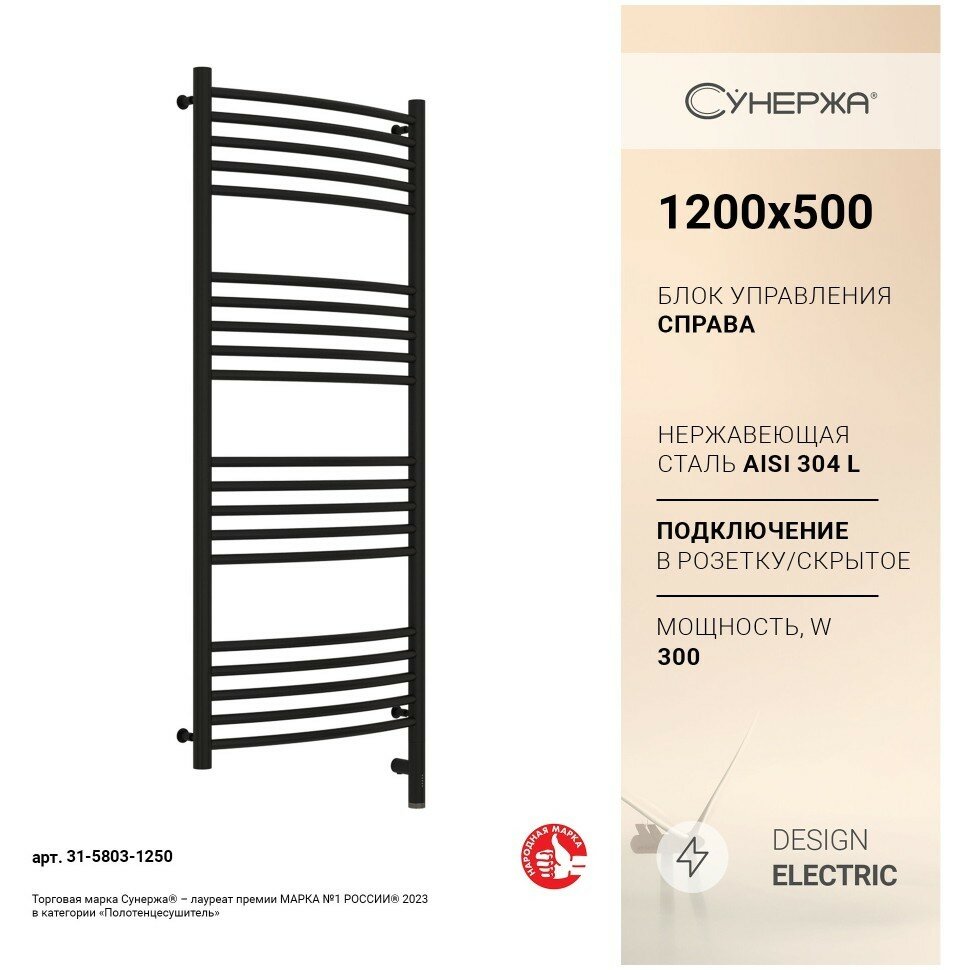 Электрический полотенцесушитель Сунержа Богема 3.0 выгнутая 1200х500 МЭМ правый матовый чёрный информация:
