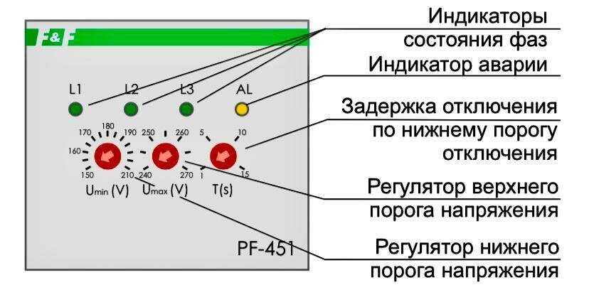 Автоматический переключатель фаз PF-451 без приоритетной фазы с выходами для подключения контакторов информация: