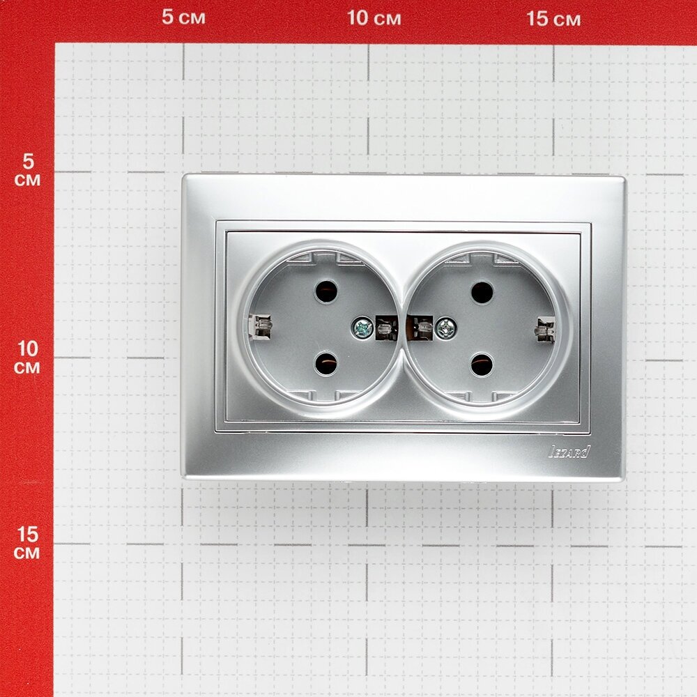 Розетка Lezard 2-м СП Mira 16А IP20 с заземл. со вставкой керамика сер. метал, 701-1010-127 информация: