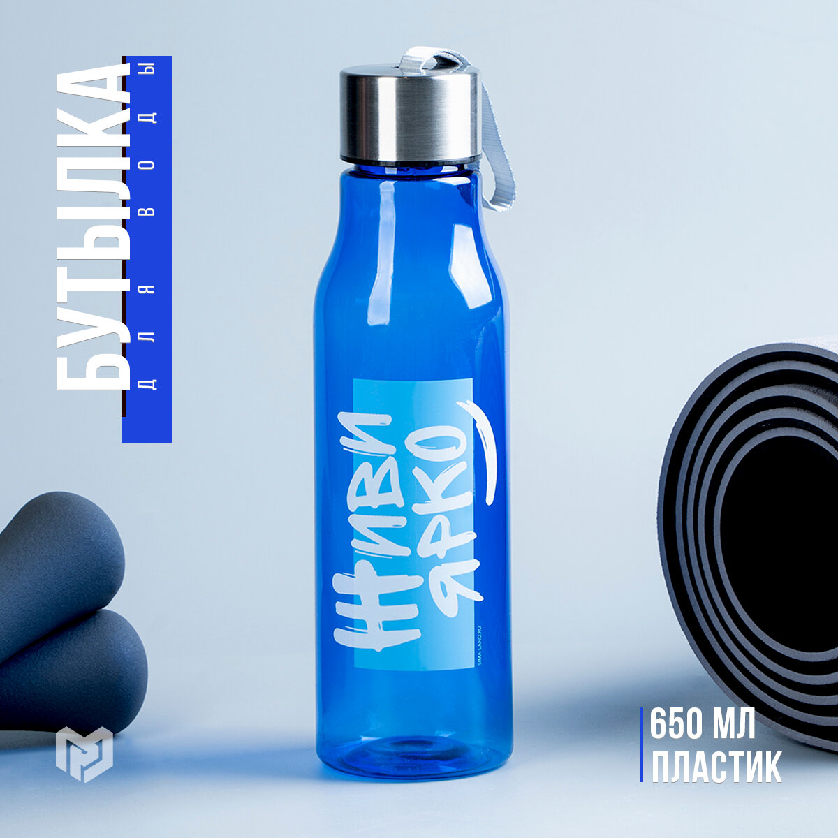 Бутылка для воды «Живи ярко», 650 мл, синий, пластик, спортивная информация:
