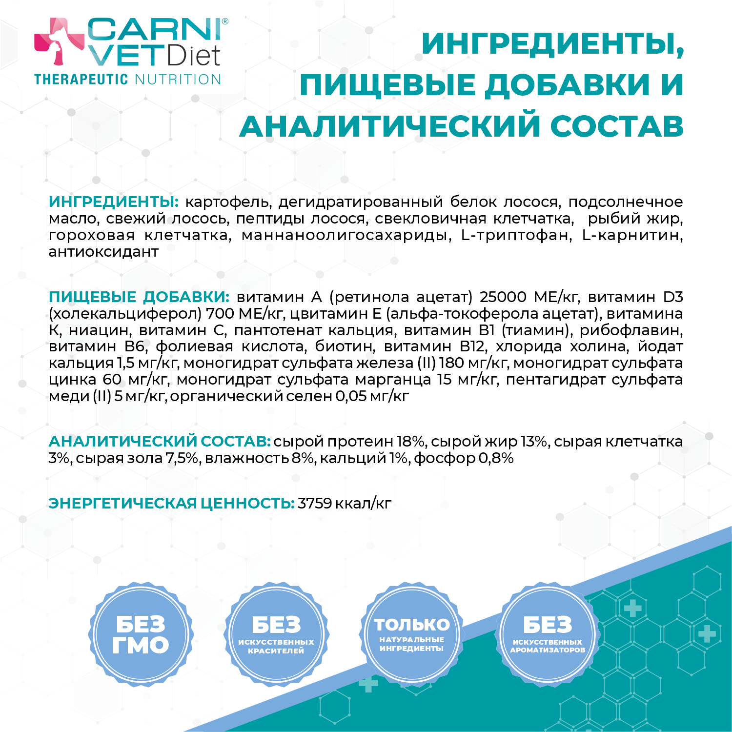 Корм для собак сухой CARNI VET Diet Allergy Defense При аллергии и для здоровья кожи и шерсти на лососе, 2.5кг информация: