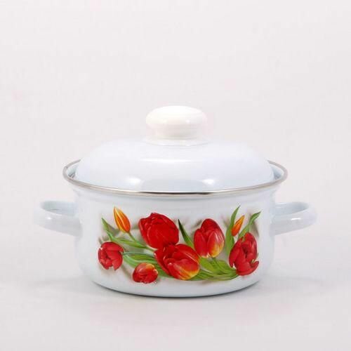 Кастрюля эмалированная 1,5 л с ободком белая с рисунком Фруктовая фантазия