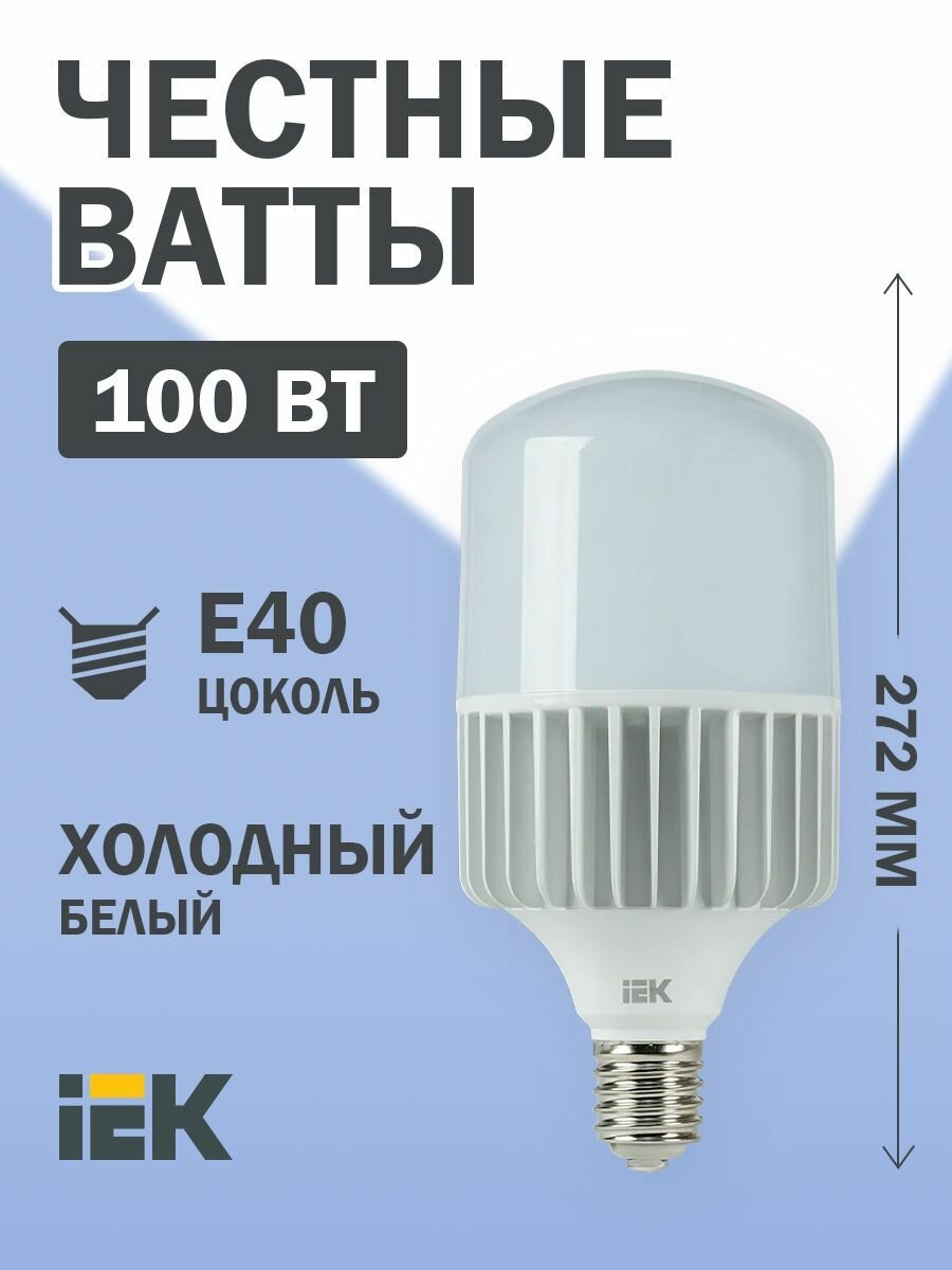 Лампа светодиодная IEK LLE-230-65, E40, HP, 100Вт, 6500 К, 1 шт. в упаковке