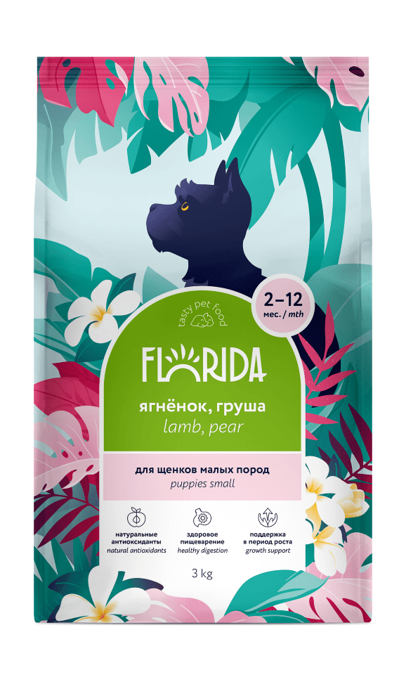 FLORIDA для щенков малых пород с ягненком и грушей NEW 1 кг х 4 шт 3 589 ₽