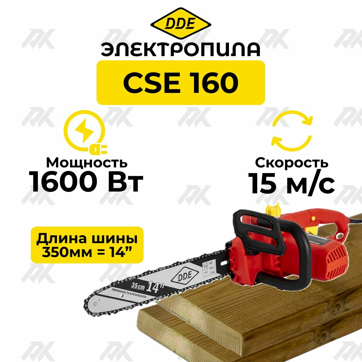 Пила электрическая цепная DDE CSE160 (дв. попер, 1,6 кВт, шина 35 см, 3/8PM-52-1,3) информация: