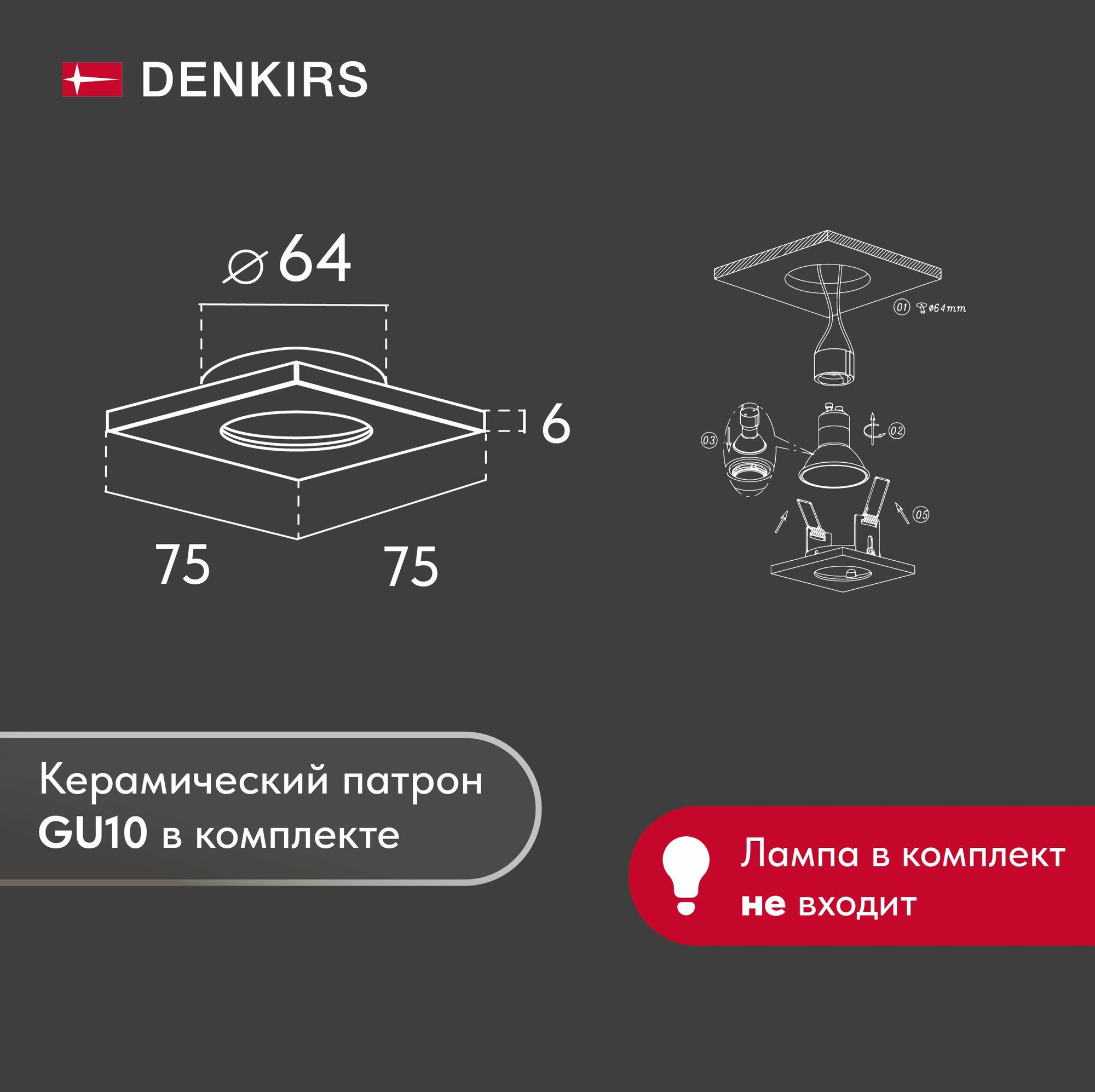 10 цен на Светильник потолочный встраиваемый DENKIRS DK2031-WH IP 20, 50 Вт, GU10, белый, алюминий