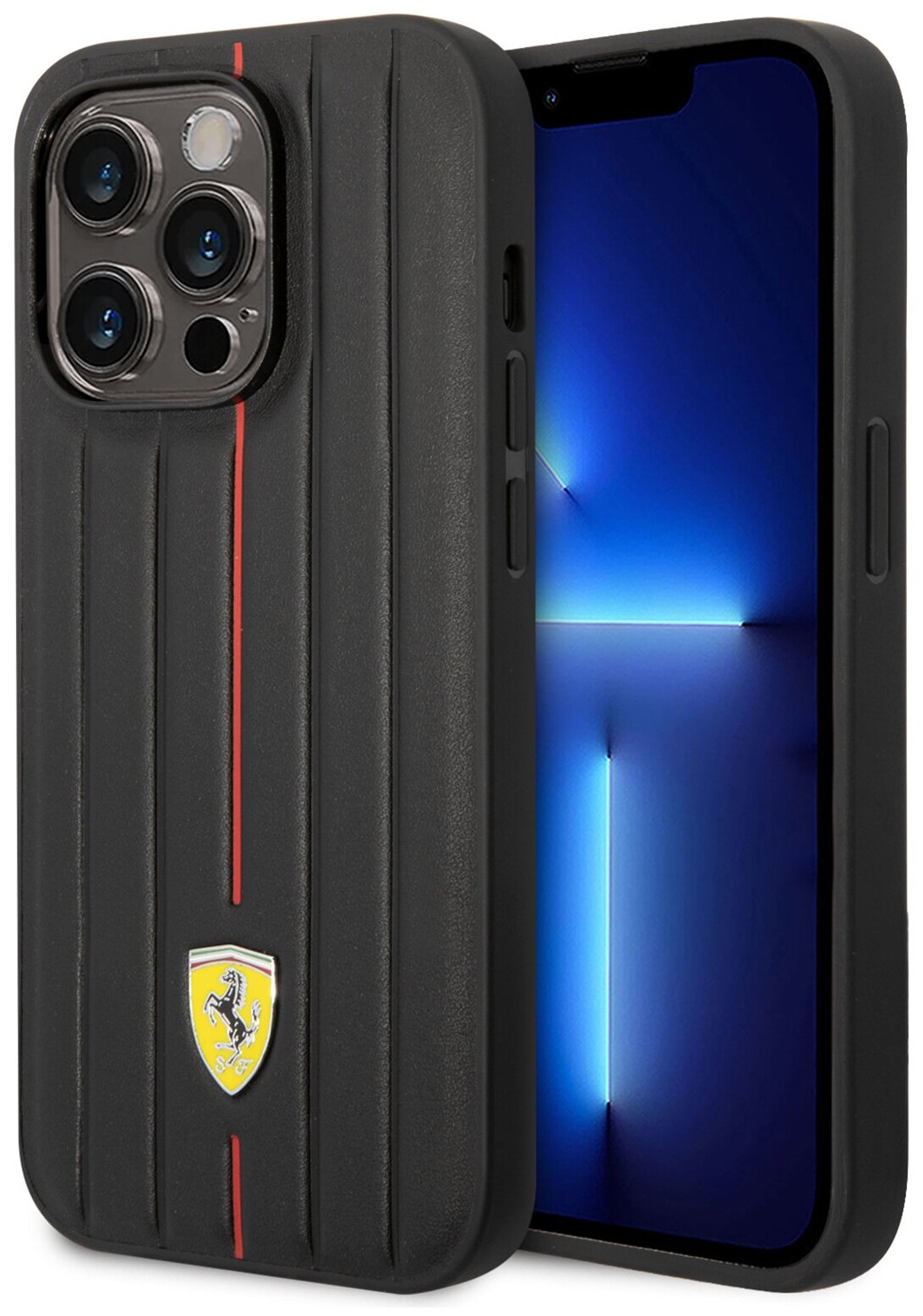 Ferrari для iPhone 14 Pro чехол Leather Embossed stripes Hard Black информация: