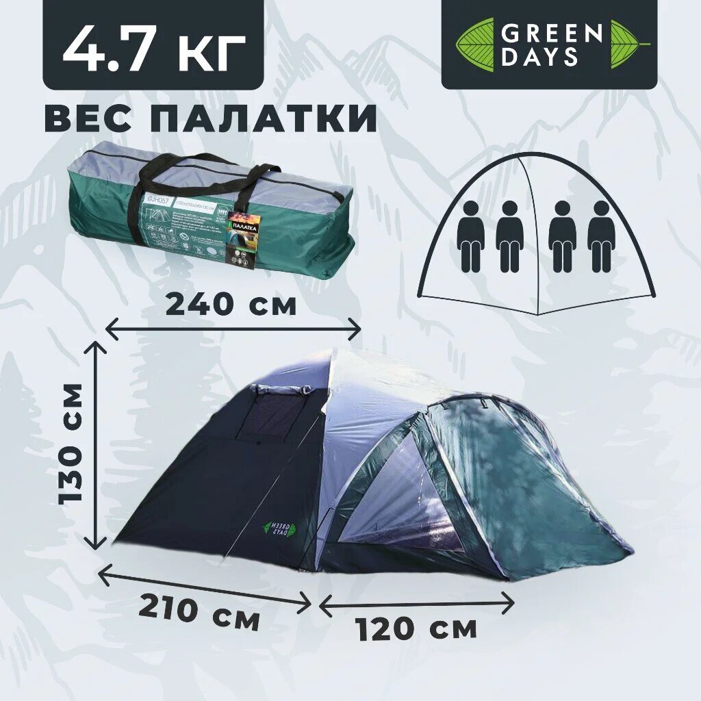 Green Days Палатка туристическая 4-местная для кемпинга и отдыха двухслойная информация: