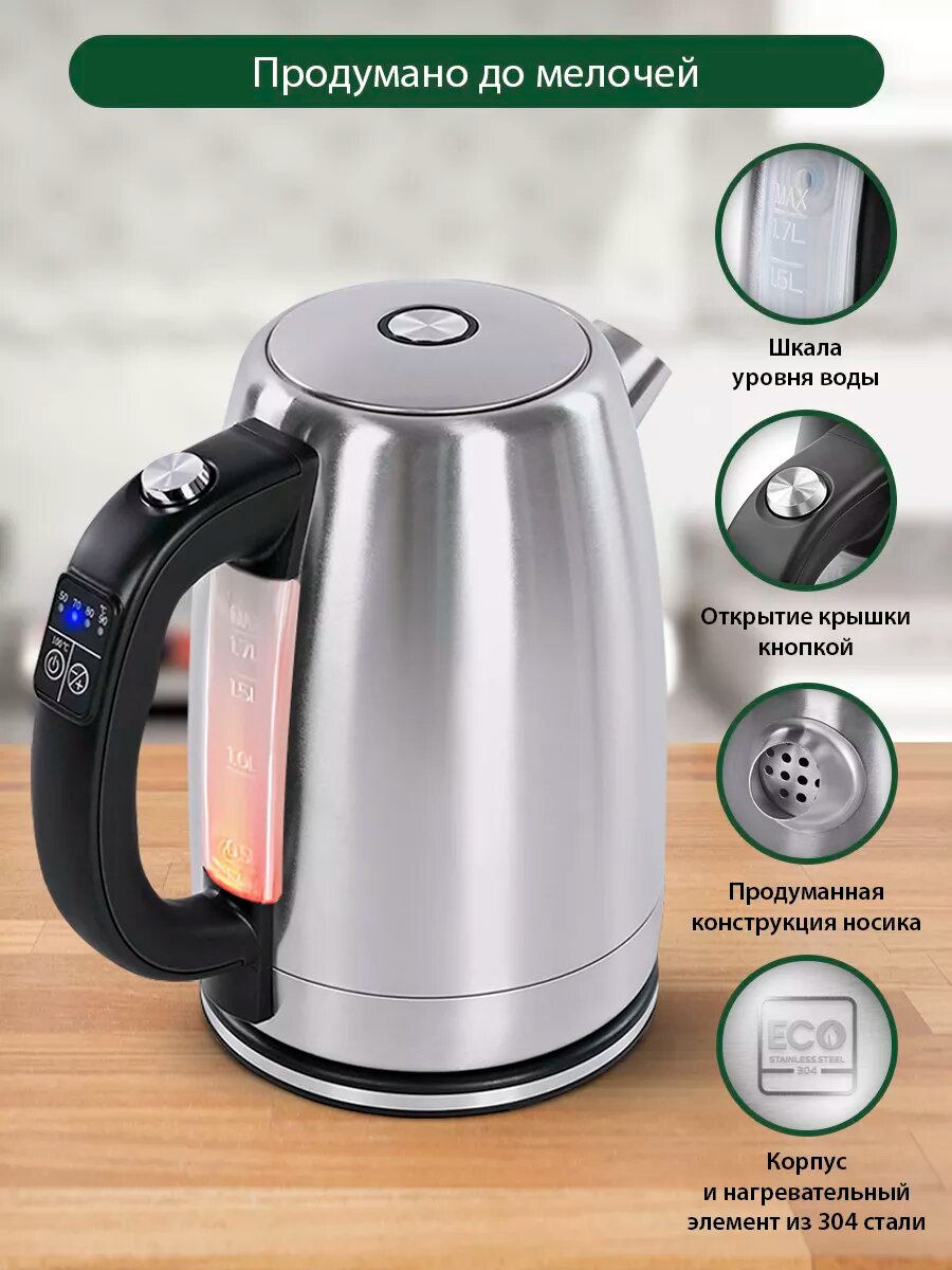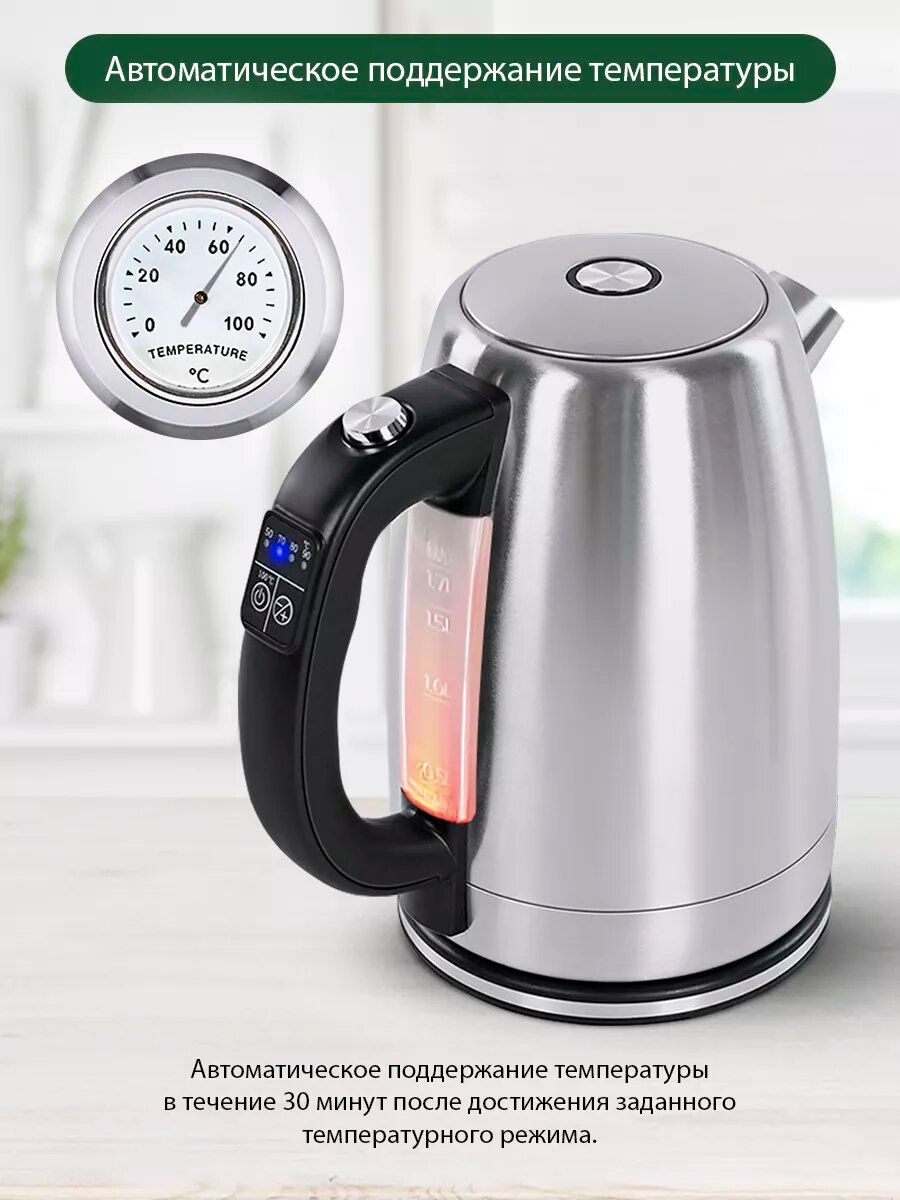 Чайник металлический с контролем температур, умный 1.7 л