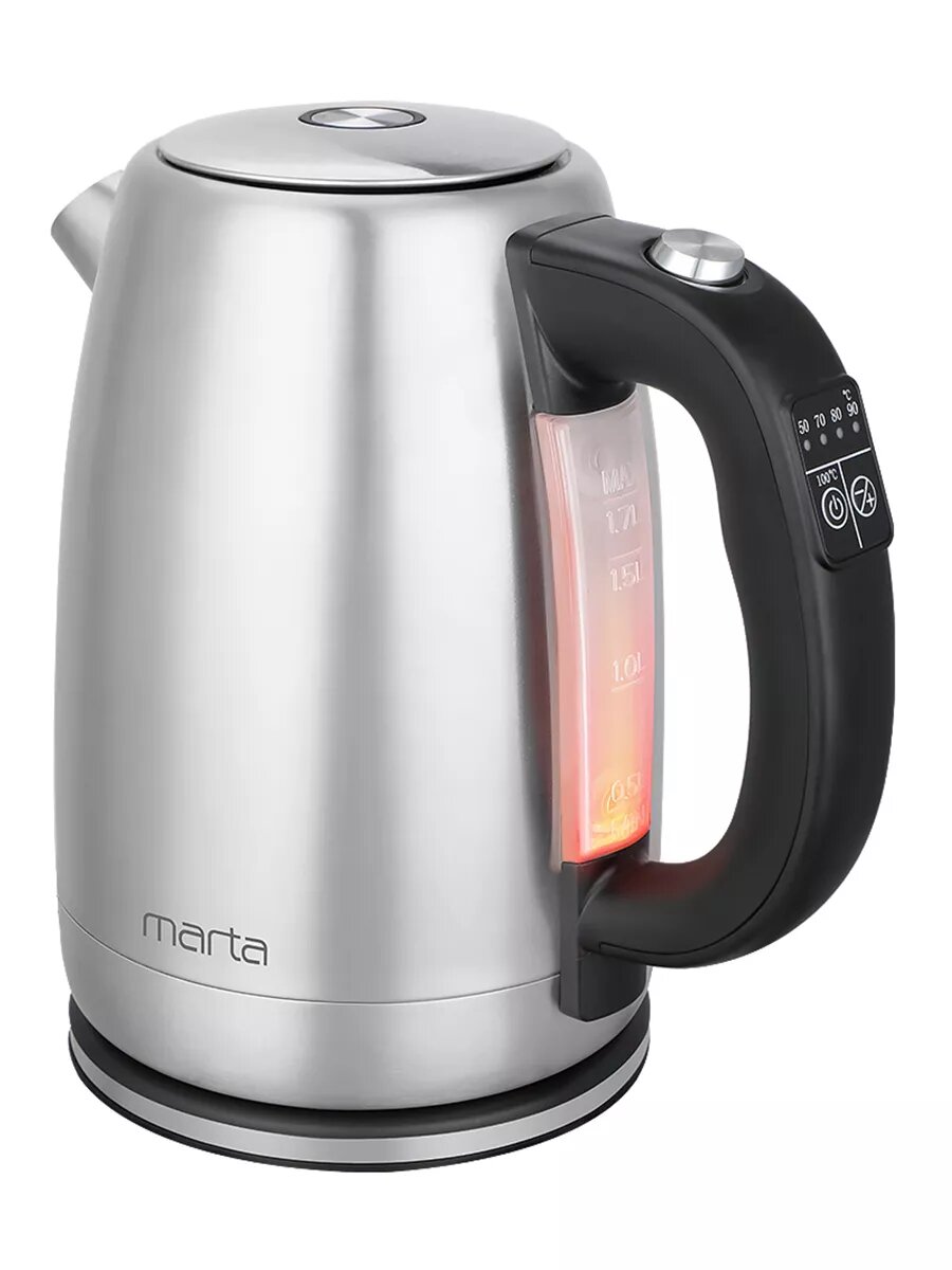 10 цен на Электрический чайник MARTA MT-4564 черный жемчуг металлический с контролем температур, умный 1.7 л