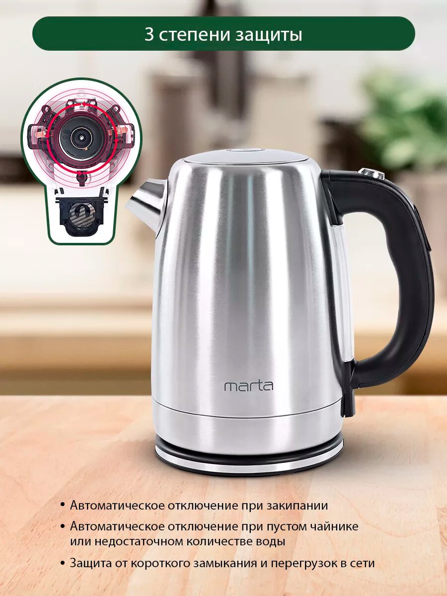 Электрический чайник MARTA MT-KT4652A черный металлический 1,8 л