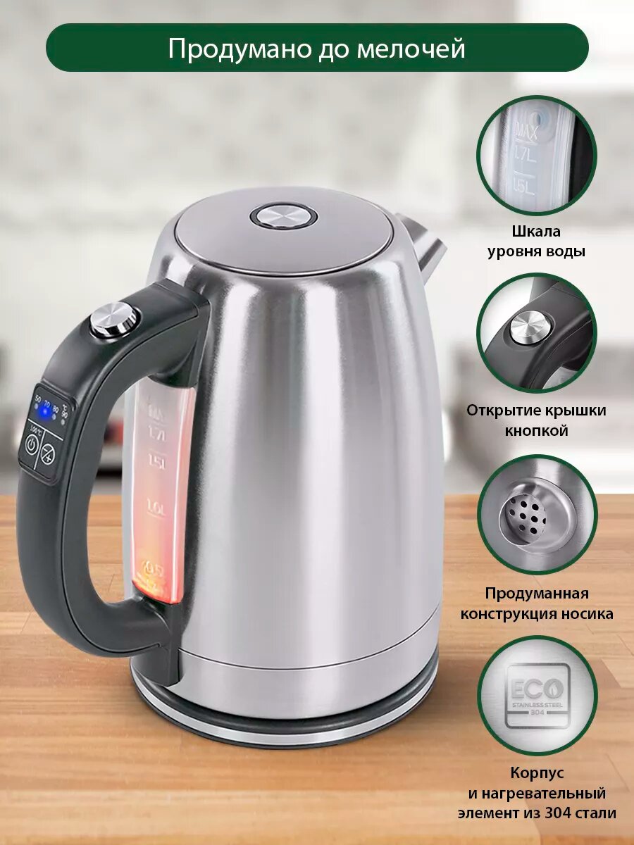 10 цен на Электрический чайник MARTA MT-4564 серый жемчуг с контролем температур, умный 1.7 л