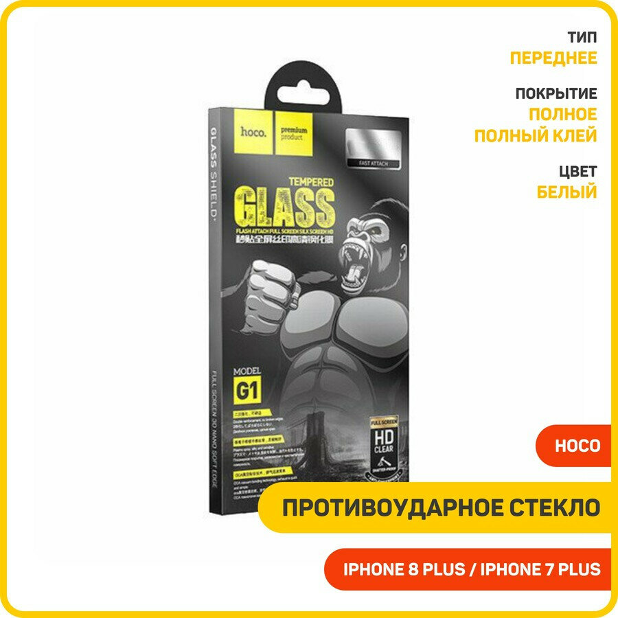 Противоударное стекло 2D Hoco G1 для Apple iPhone 7 Plus / iPhone 8 Plus (полное олеофобное покрытие) белый информация: