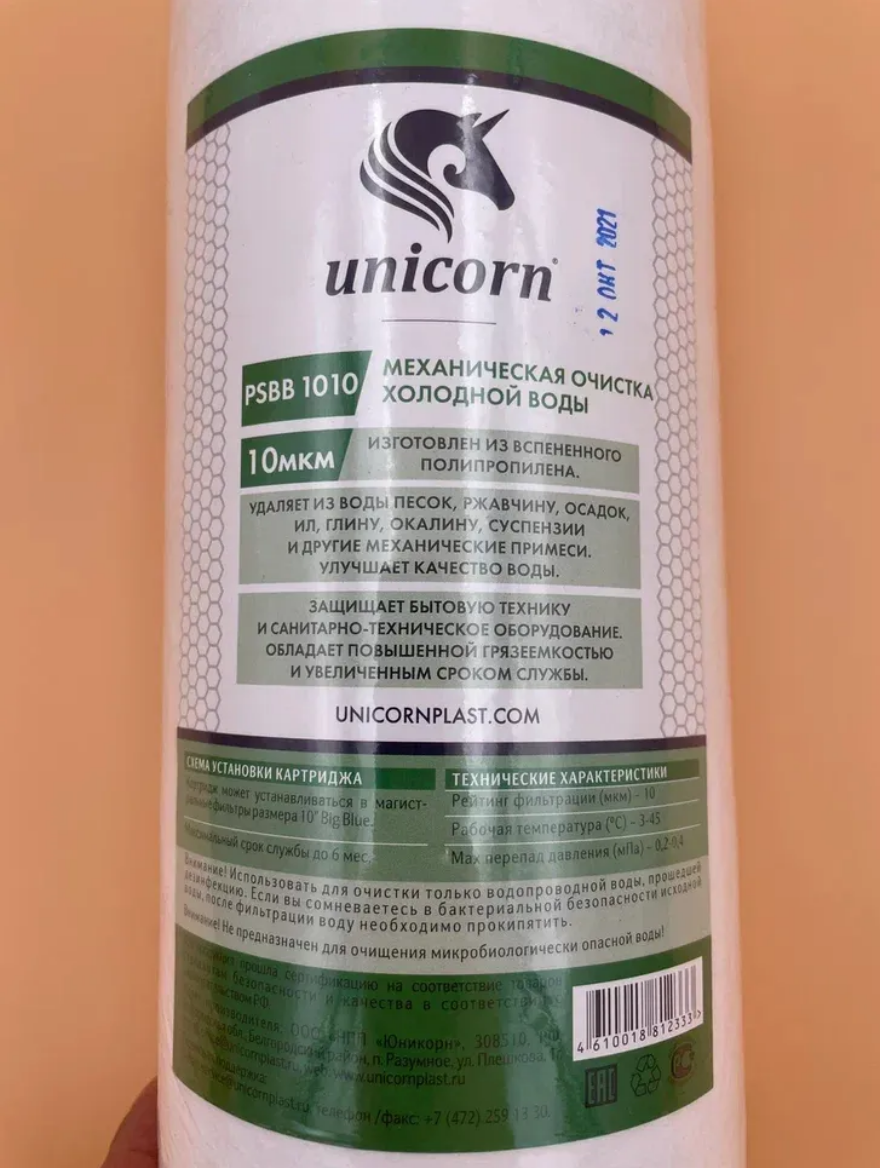 Unicorn 10" ВВ 10 мкм Картридж полипропиленовый (PS ВВ 1010) информация: