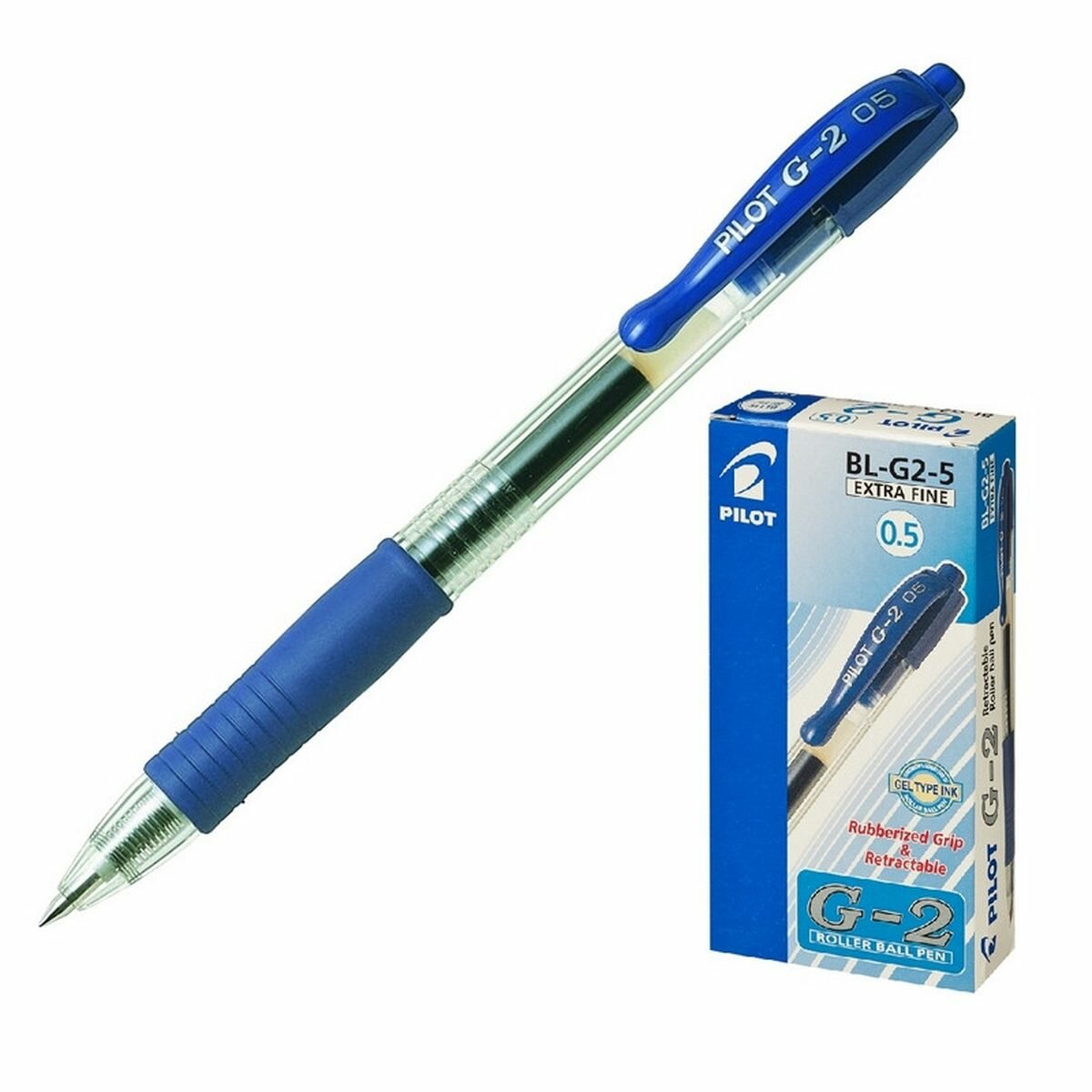 10 цен на Ручка гелевая автоматическая Pilot BL-G2-5 (0.3мм, синяя, резиновая манжетка) (BL-G2-5-L), 12шт.