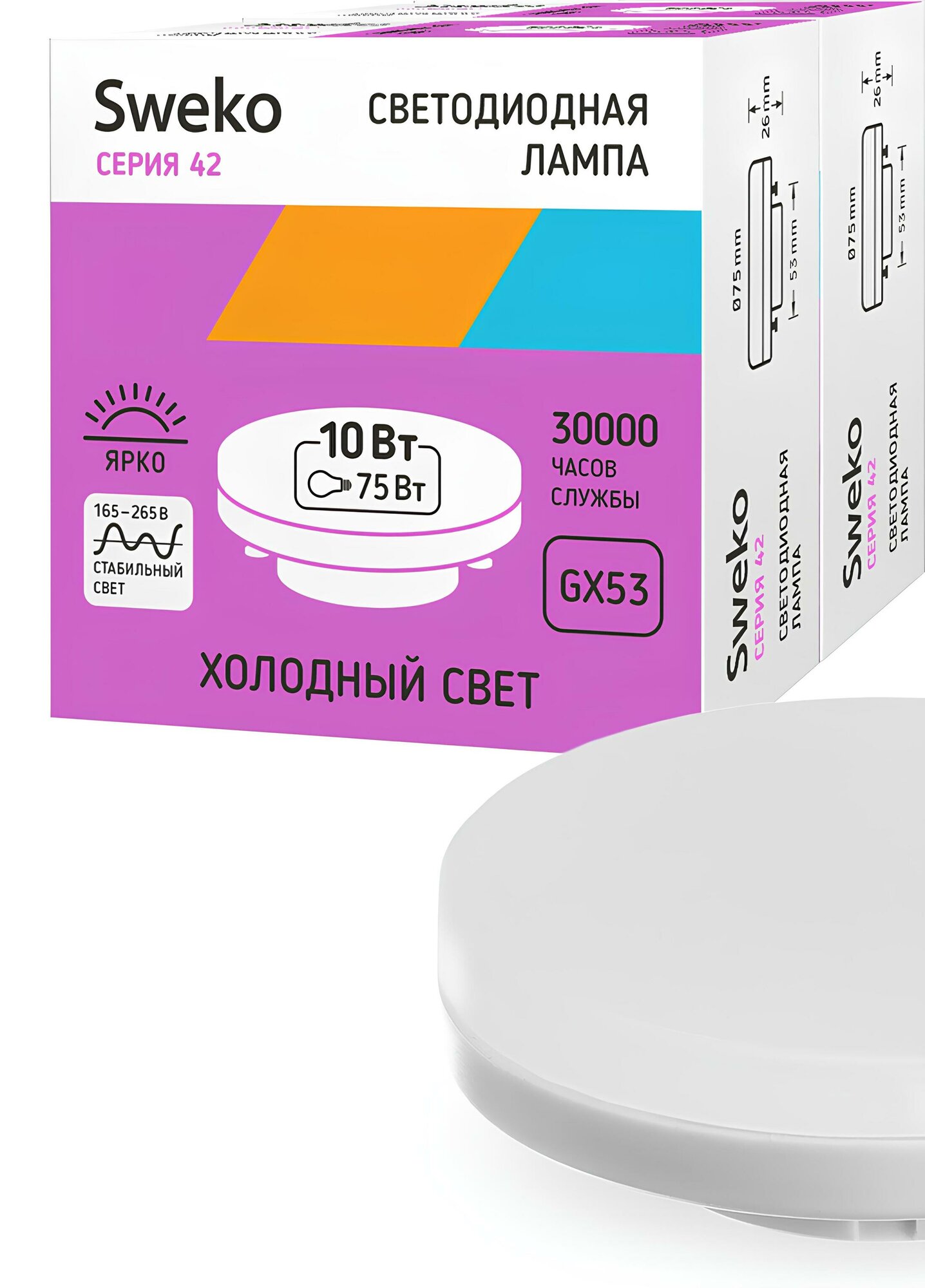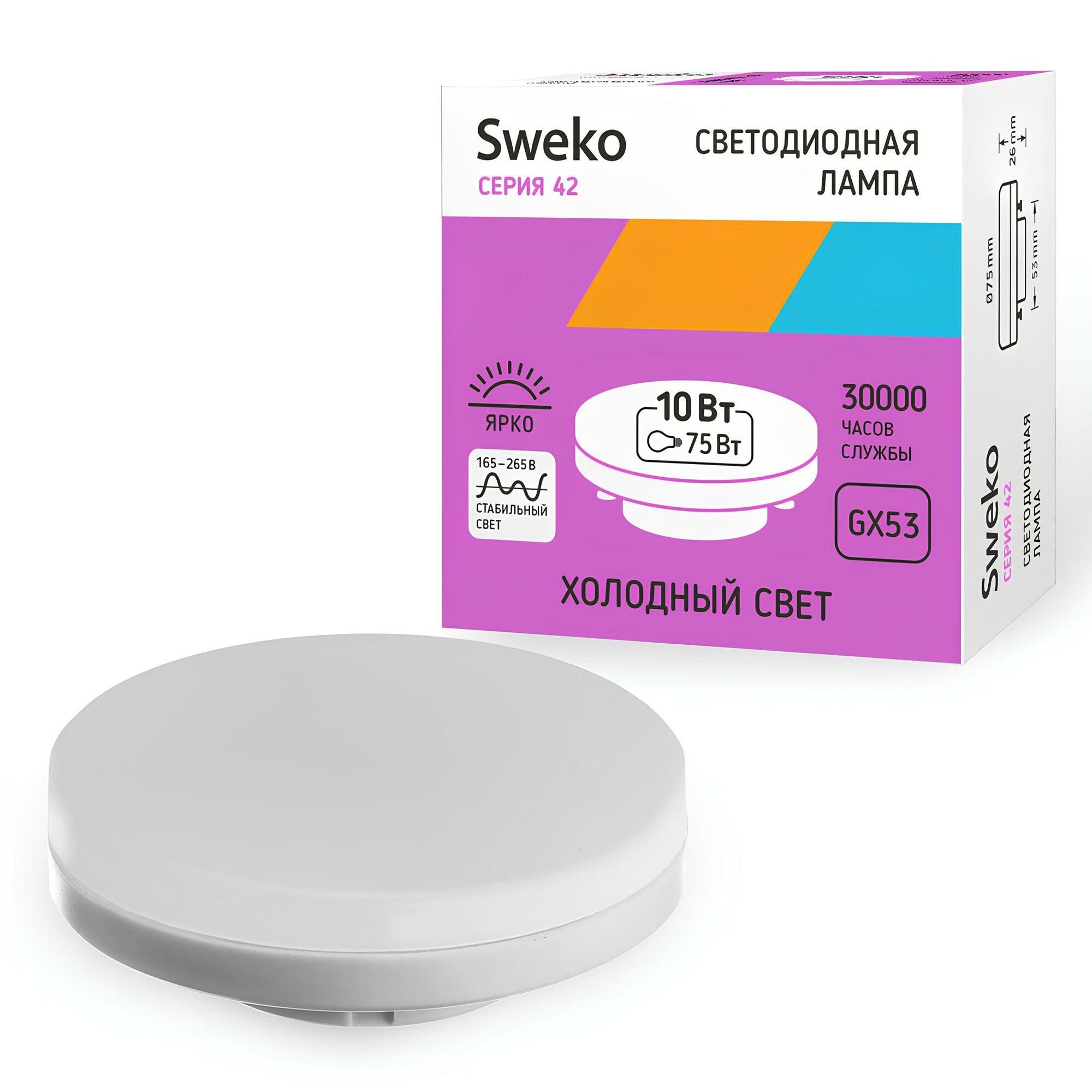 10 цен на Лампа диодная Sweko дневная GX53 10Вт 3000/950лм 165-265В матовая