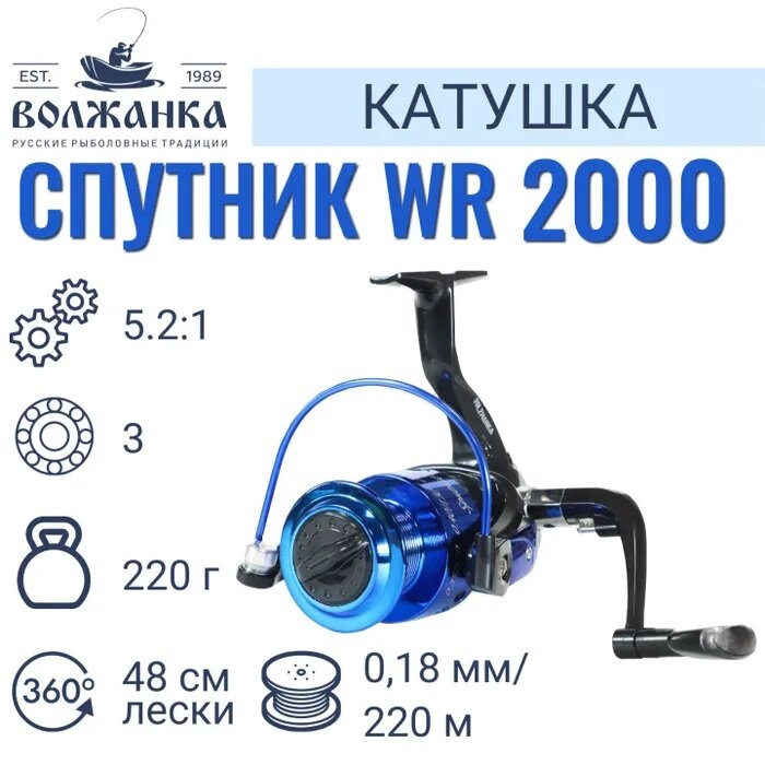 Катушка рыболовная безынерционная "Волжанка Спутник WR 2000" (3 подш)0.18мм/220м)/Катушка для рыбалки информация: