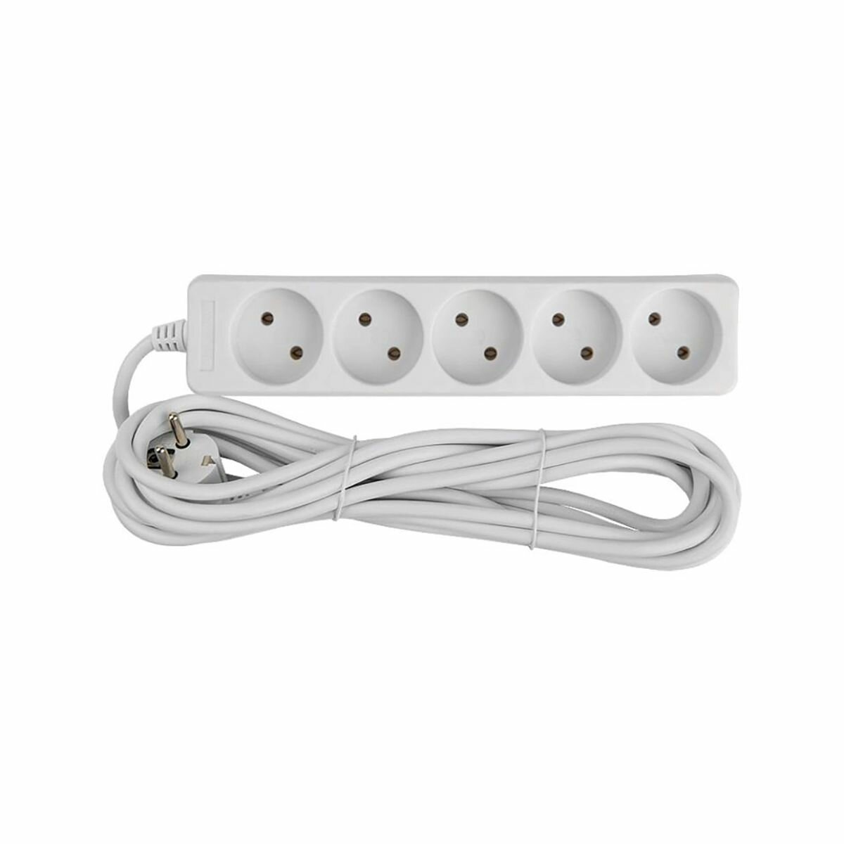 Удлинитель бытовой GES-10-2x075-5-5m, 10А, 2х0,75 мм2, 5 мест, 5 метров, без заземления